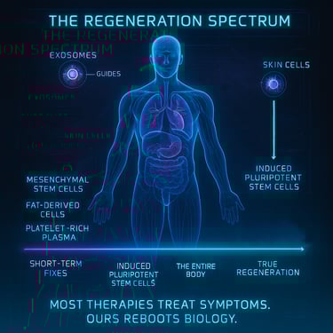 私たちは、制度の外で活動するエリート科学者たちと直接連携し、自己由来幹細胞(オートローガス)、エクソソーム、そして胚性プログラミング技術を活用し、従来治療不可能とされた疾患を静かに癒やしてきました。
